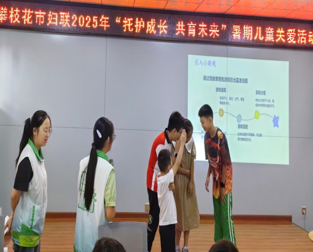 7月20日下午,攀枝花市东区妇女儿童服务中心内内笑声阵阵,一场以“快乐成长,拥抱阳光”为主题的小学生心理班会在此举行。活动通过趣味游戏、情感分享和防霸凌教育,引导孩子们学会表达情感、关注同伴,为暑期生活注入温暖与正能量。