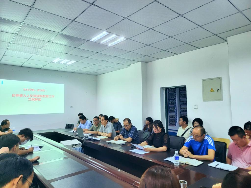 自学校纪律规矩教育活动启动以来,生化学院( 农学院)通过宣传动员、集中学习、分类宣讲、专题讨论等多种方式,结合党史学习教育、师德专题教育、“成就人生从自律开始”主题教育活动,坚持问题导向、突出教育引领,9月至11月期间,在学院师生中扎实开展纪律规矩教育,营造风清气正的育人环境。