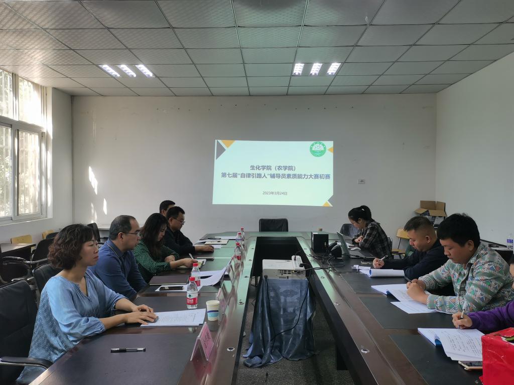 3月24日上午,我院在生化二楼会议室举行辅导员素质能力大赛。在理论宣讲环节,参赛选手分别围绕”“成为人才的前提——自律”、“中国优秀传统文化的继承与创新”和“争做新时代攀大好青年”进行。在案例分析中,参赛选手随机抽题,围绕具体案例,理性分析,研判原因,制定对策。
