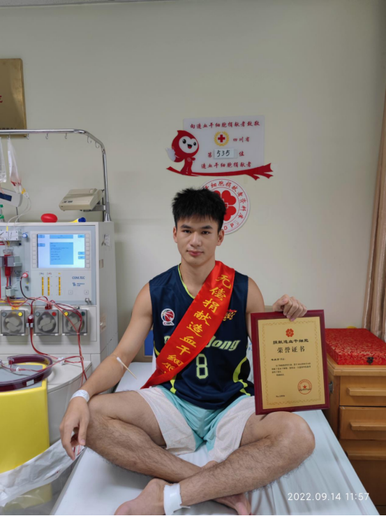 2022年9月,正在学校做大创项目的韦庆宁收到通知后,立即表达自己救助他人的意愿,并在攀枝花市红十字会的安全组织下勇敢前往疫情形势严峻的成都。经过核酸检测、注射动员剂等一系列流程,9月14日,他在四川省人民医院血液科成功完成造血干细胞采集。