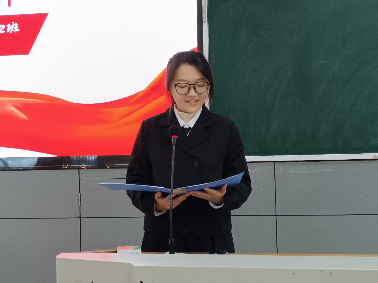 新生代表陈清霞发言。她表达了对大学生活的憧憬与期待,并表示将珍惜这次宝贵的机会,积极与引航员沟通交流,尽快转变角色,规划好自己的大学生涯。