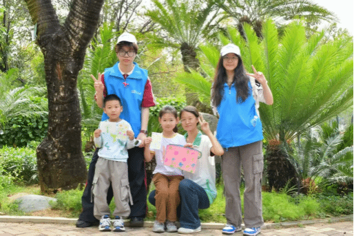 活动的尾声充满了温馨与创意。在苏铁园内,志愿者组织了“春天明信片”亲子创作环节。小朋友们和家长一起,将一路的所见所闻、所学所感,通过画笔和贴纸,转化为一张张独一无二的春日纪念。创作完成后,现场举行了简短的仪式,志愿者们为每一位小朋友颁发了“化法护成长·绿伴安全小卫士”荣誉证书,肯定他们的积极参与,并鼓励他们将今日所学转化为日常行动。最后,志愿者对全天活动的核心知识进行了回顾总结,再次强调了安全防护与热爱自然的意义,活动在亲子家庭有序、满足的离场中圆满落幕。