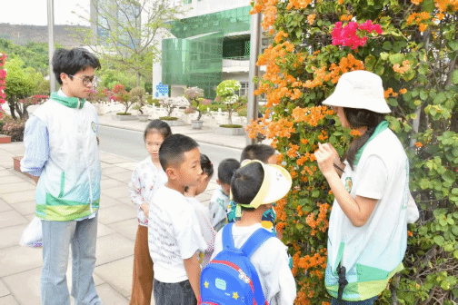 活动在攀枝花学院校园内拉开序幕。志愿者首先开设了“植物识别小课堂”,聚焦于校园内盛开的三角梅,细致讲解了其不同品种的花色、叶片形态等辨识特征。孩子们在志愿者的引导下,近距离观察、轻轻触摸,通过亲身感受加深对植物多样性的理解。随后,在前往苏铁园的途中,一堂生动的“移动安全科普课”贯穿始终。志愿者们化身“安全导师”,结合沿途遇到的各类植物,用通俗易懂的语言介绍了常见有毒植物的外观特点与潜在风险,并通过有奖问答等互动形式,让孩子们在欢声笑语中牢牢掌握了“不触碰、不采摘、不食用”的户外安全准则,将自我保护意识深植心中。